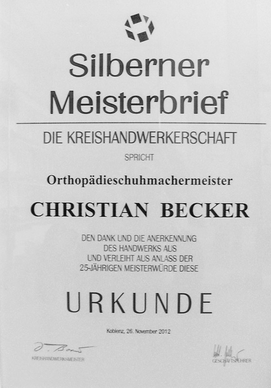 Silberner Meisterbrief Christian Becker